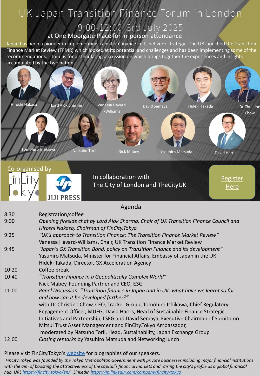 2025年7月3日(木)、FCT・時事通信社共催「日英トランジションファイナンスフォーラム」のアーカイブを公開しました。